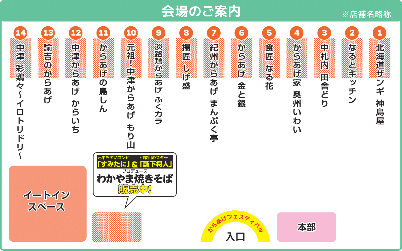 地元和歌山からは「まんぷく亭」、すみたに兄弟プロデュース「わかやま焼きそば」も出店します。